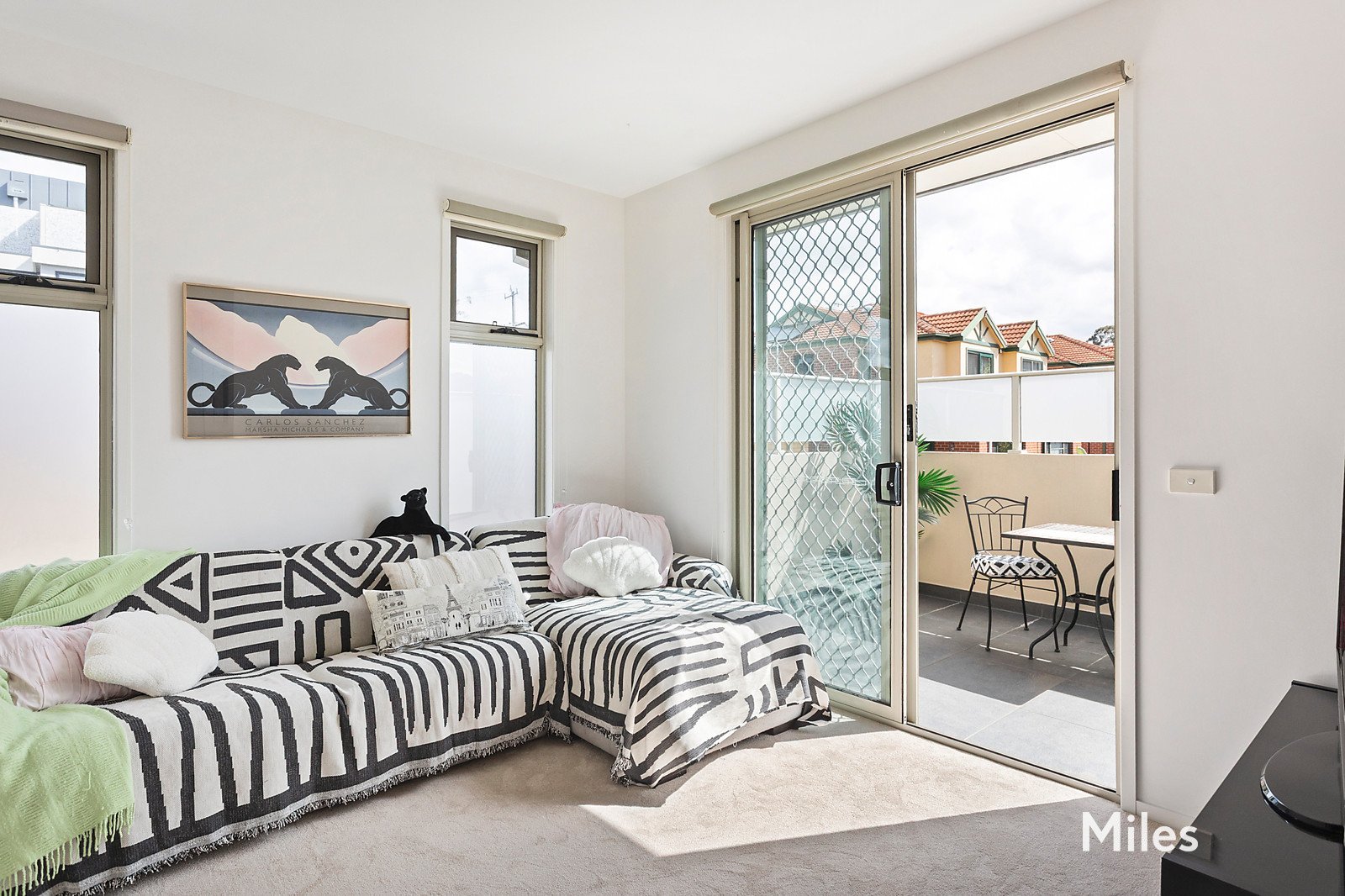 The sleek kitchen is fitted with integrated appliances, stone benchtops, and soft-close cabinetry - perfect for entertaining or everyday ease. Step outside to a high-walled courtyard garden with rain tank and enjoy a rear first-floor terrace and balcony. A remote-control double garage with internal access completes the package.