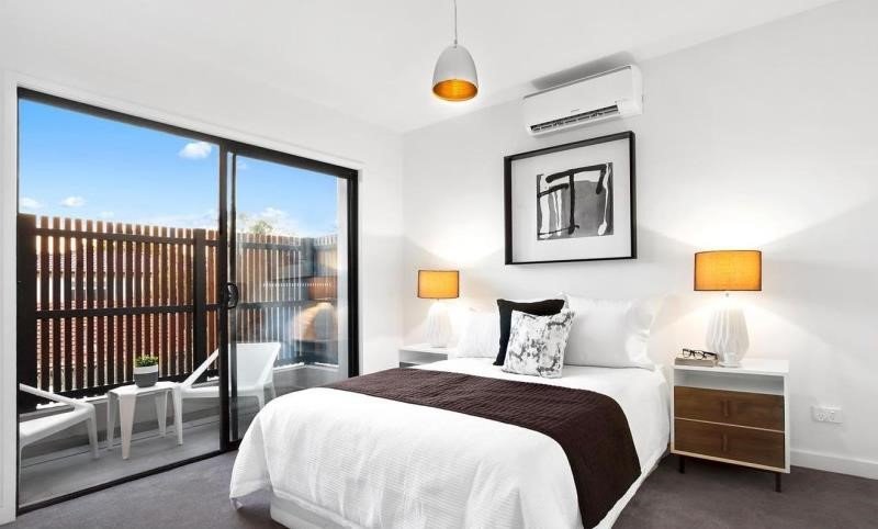 This two storey townhouse comprises two bedrooms, generous sized robes and both with private balcony. Also features two bathrooms one with bath, kitchen with stainless steel appliances, stone bench top and loads of cupboard space. Split system heating and cooling to both bedrooms and spacious living area opening to private courtyard.