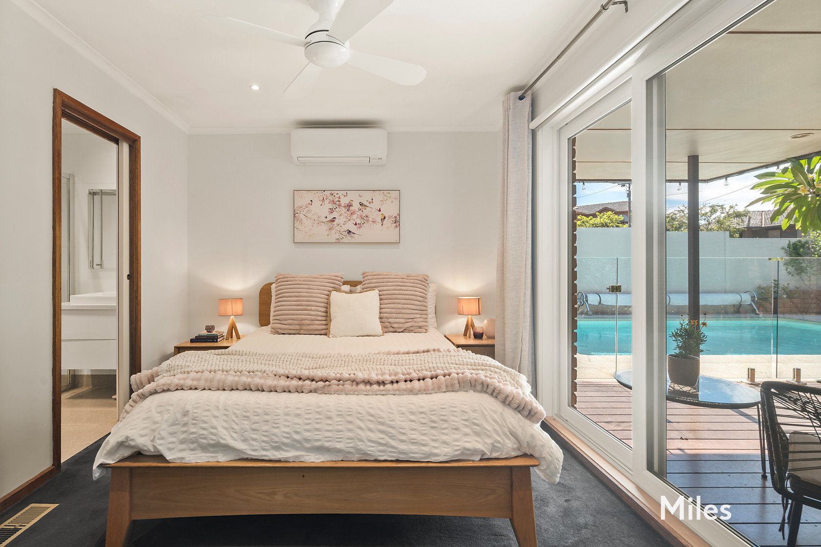 Complemented by a dedicated home office with a desk and storage, a perfectly flowing layout offering exceptional accommodation includes four bedrooms where three integrate built-in robes, while an air-conditioned main bedroom opening to a pool-side deck features a ceiling fan, walk-in robe and a stylish fully-tiled ensuite.