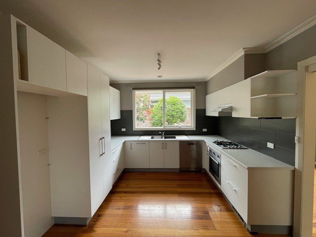 Kitchen has meals area, gas cooktop, dishwasher and lots of storage. Three bedrooms, two have robes, large master with ensuite with twin basins, third bedroom could easily be study with built-in shelving and access to private courtyard. Main bathroom with shower over bath and toilet.