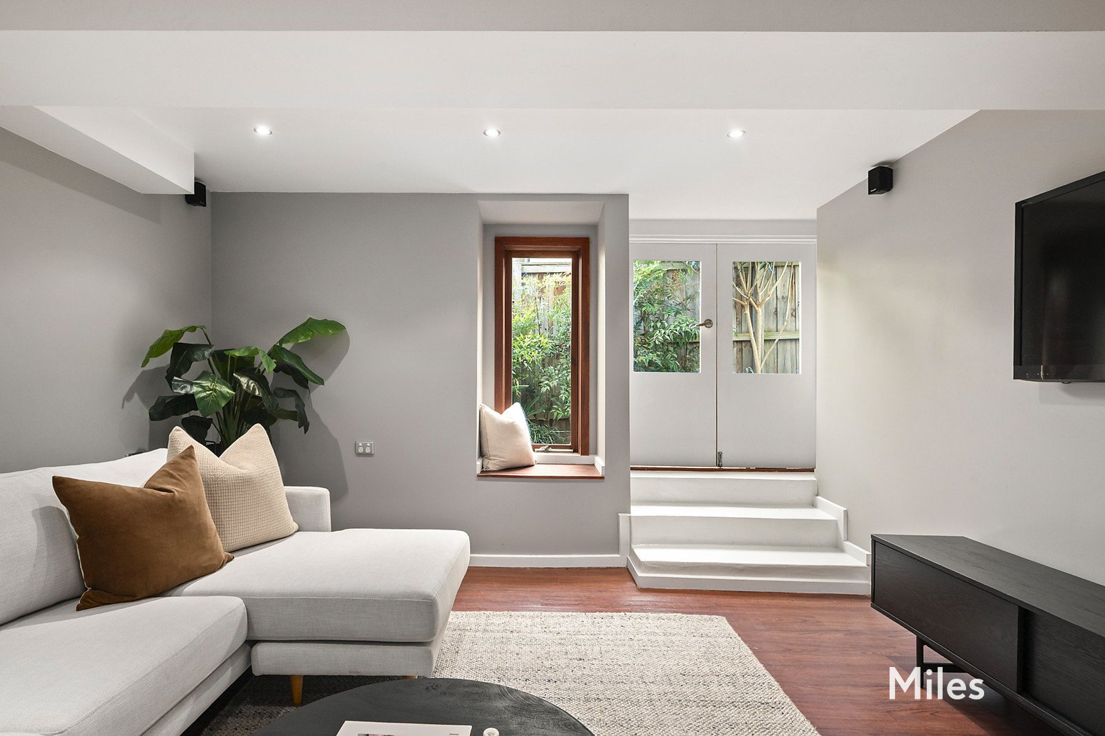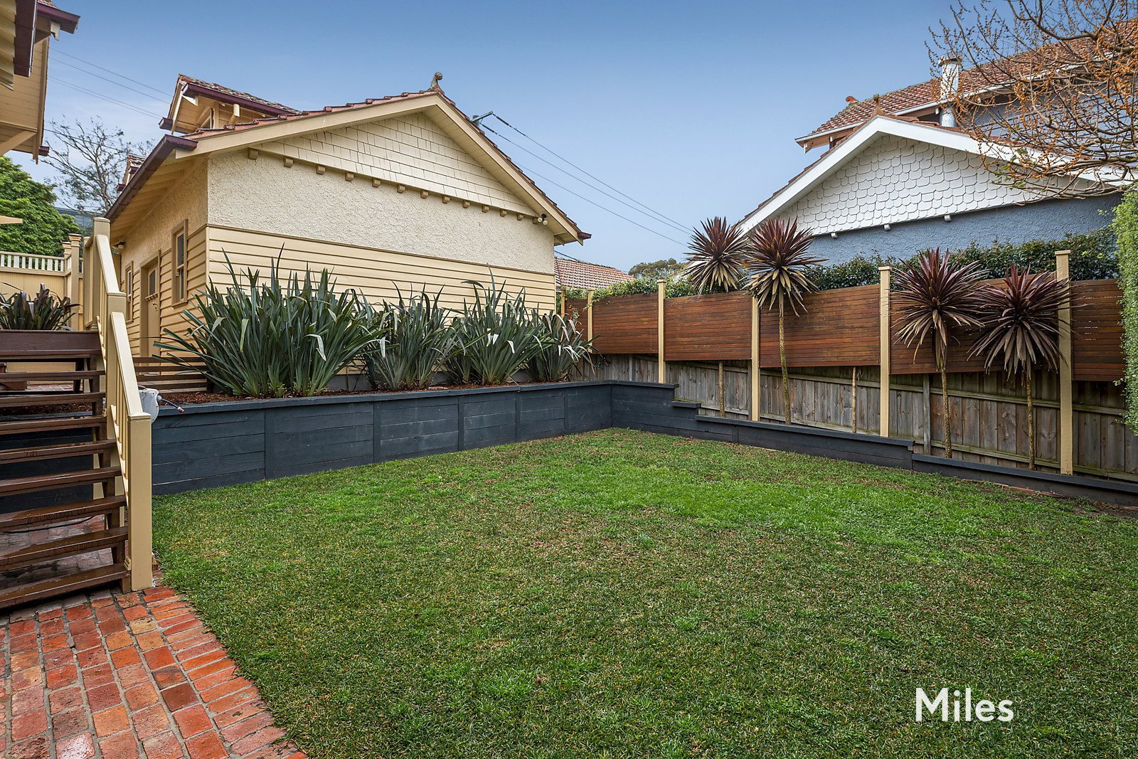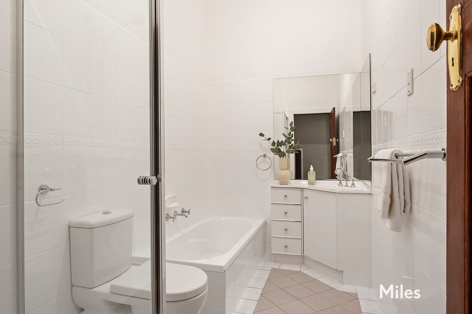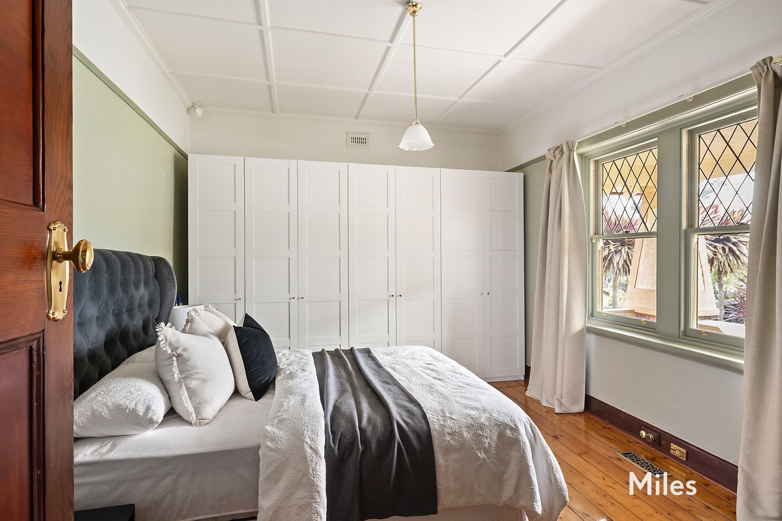 Retaining the hallmark features of its era, the home features two spacious ground floor bedrooms, including a master with built-in robes and garden views, serviced by a stylishly renovated bathroom.
