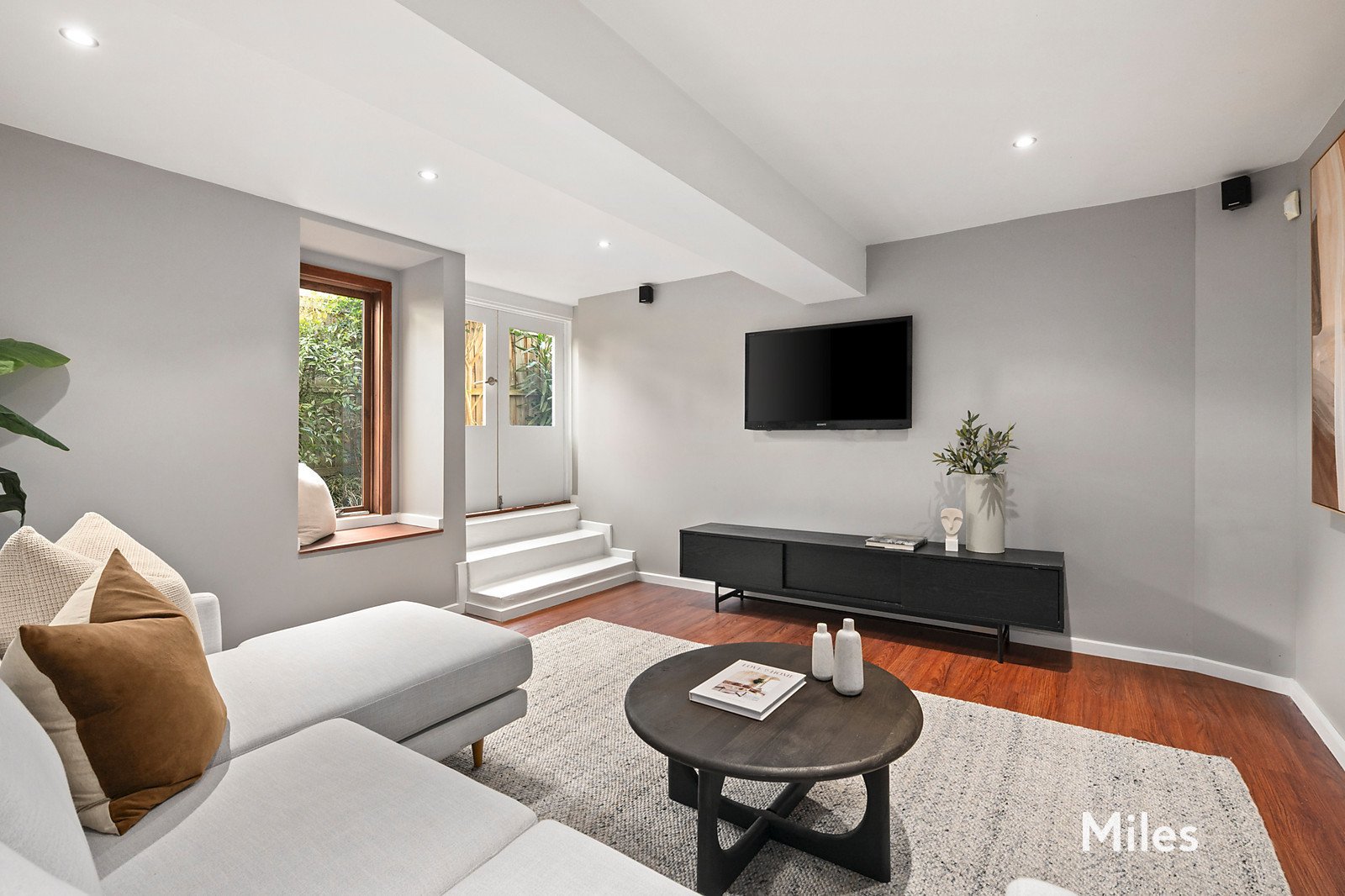 At the heart of the home, the expansive kitchen and adjoining living/meals area is a true entertainer's dream, boasting granite benchtops, stainless steel appliances, a tiled splashback, large pantry, and abundant storage. North-facing windows flood the space with light, while French doors open to a covered balcony overlooking the private rear yard. Upstairs, two additional bedrooms with built-in robes share a second renovated bathroom, alongside a cleverly designed study nook. A versatile rumpus and storage area occupy the lower ground floor.