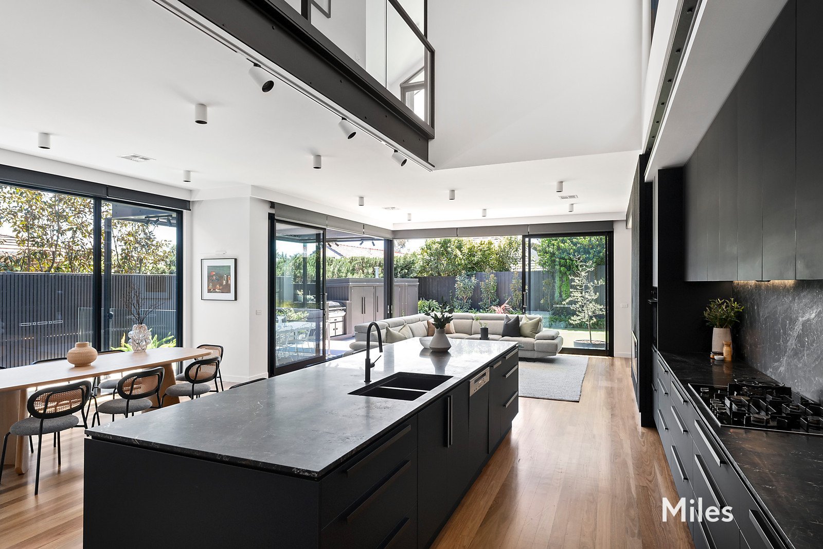 SOLD by Miles Real Estate. An architectural statement commanding attention with its exceptional style and family sophistication, this compelling as-new residence with five bedrooms, a study and 3.5 bathrooms is a Scandinavian barn-style sanctuary designed for expansive living and excellent pool-side entertaining.