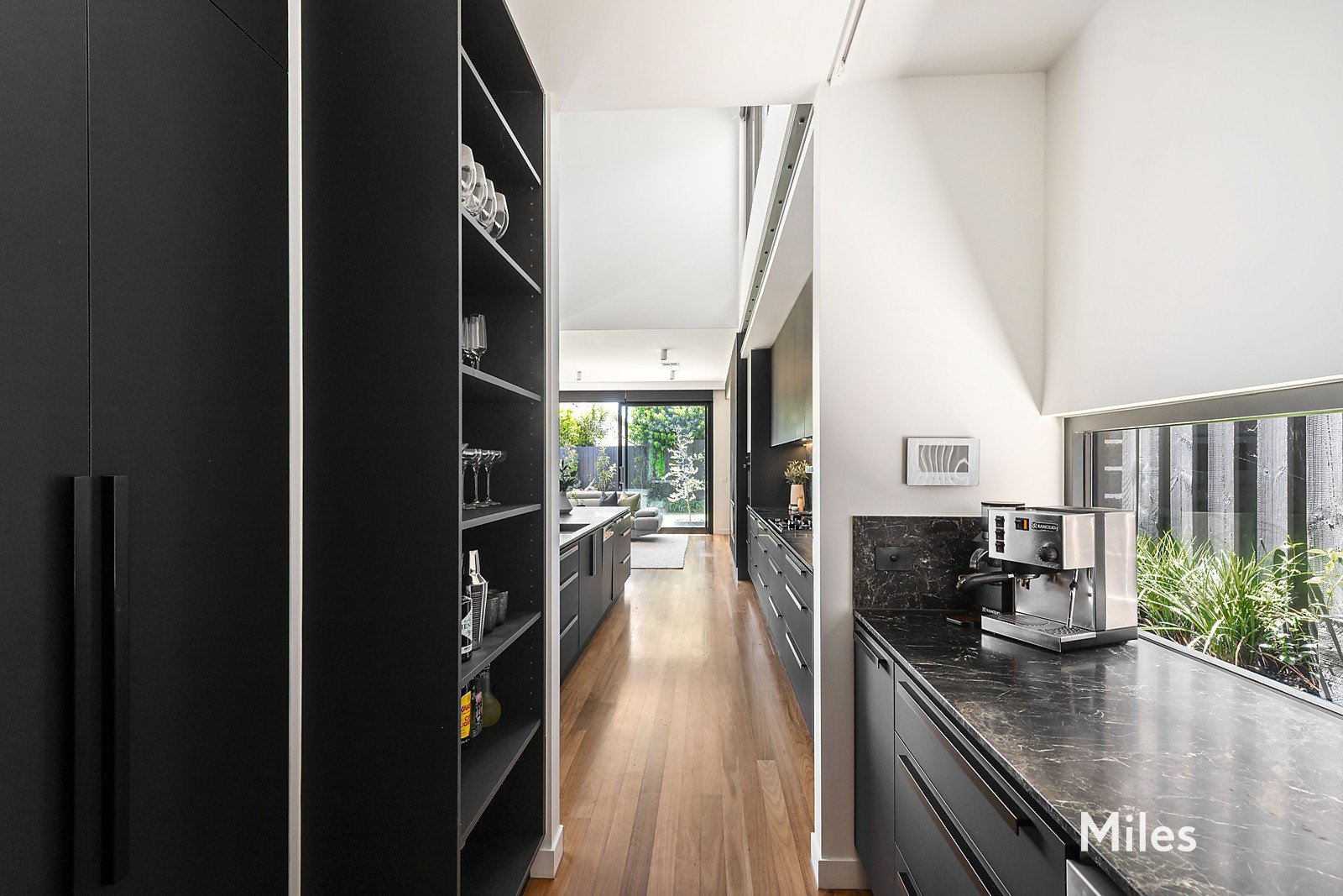 A separate study with bespoke joinery adjoins the entry, while a marble-topped powder room, extensive understairs storage and a superb laundry with terrazzo floor tiles, a chute and a drying room highlight the thoughtfully-designed layout's superb finish and functionality.