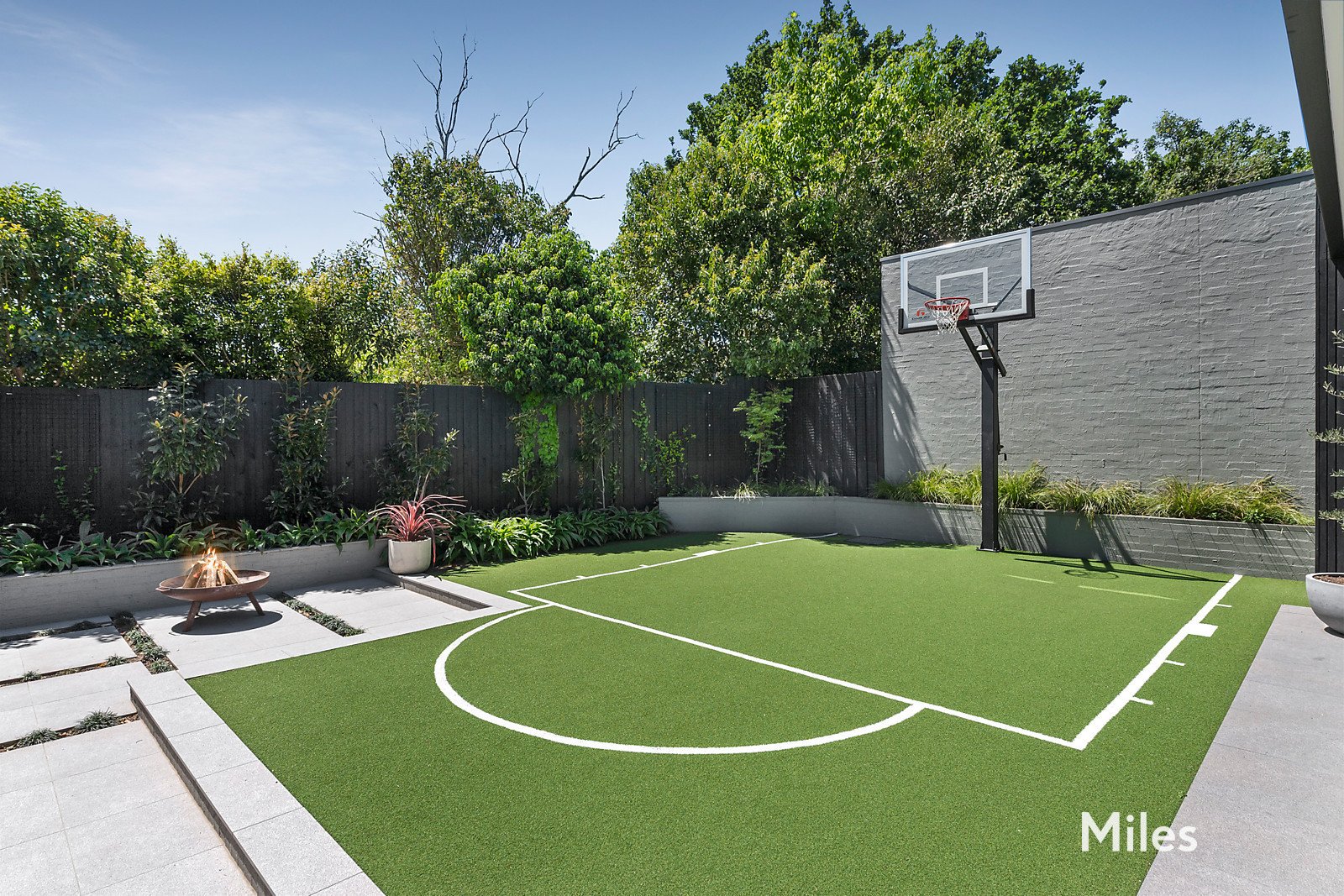 Stack-sliding corner doors open wide to seamlessly link with an automatic louvre-covered terrace for sublime alfresco entertaining in a north-facing rear, landscaped setting featuring a solar/gas-heated self-cleaning pool, a gas-plumbed BBQ, mod-grass basketball key, lock-up storage and a firepit area.
